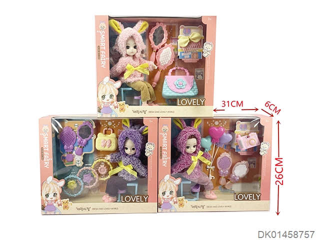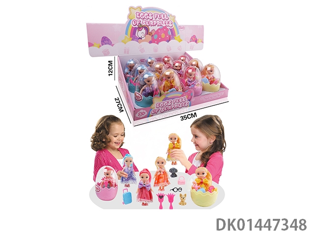 Egg set with big eyed beautiful girl, comb, bag, glasses, animals, and luggage (12 pack)
