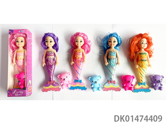 Color box single 5-inch mermaid with teddy bear