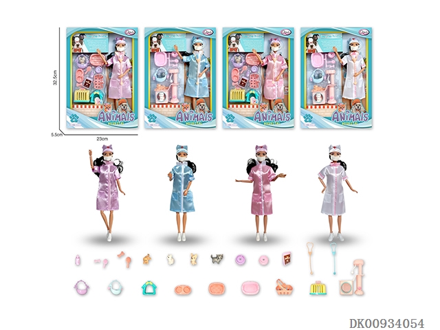 New doctor theme 11.5-inch full body live hand doctor with kitten and dog medical suit