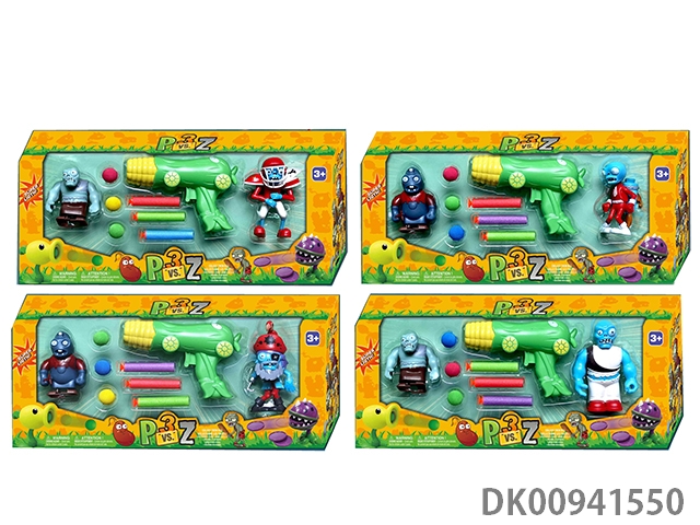 3.5-Inch clockwork walking zombie and 5-inch zombie and 2-in-1 corn gun and soft bullet (pu bullet) boxed 4 corn guns have the function of firing pu soft round bullet and suction cup soft bullet