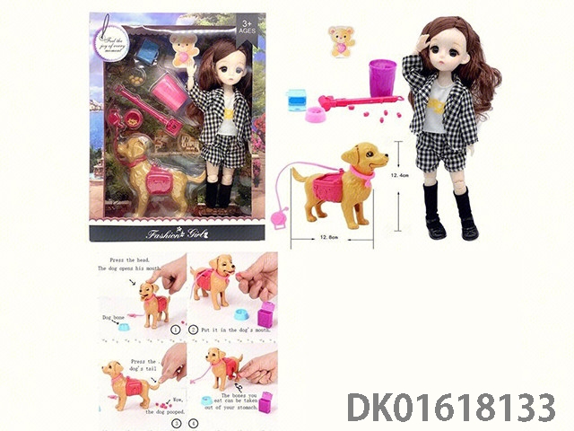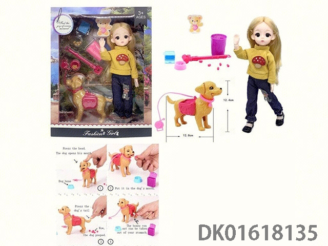 12 Inch 21 joint solid bjd doll and (able to pull poop) pet dog 7-piece set vacuum formed accessories