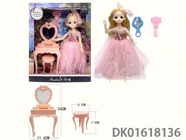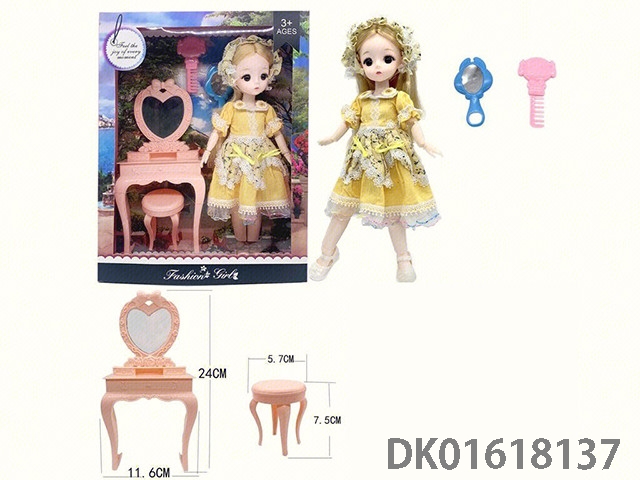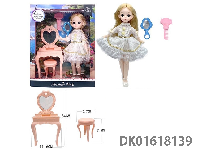 12 Inch 21 joint solid bjd doll, dressing table, chair, comb, mirror