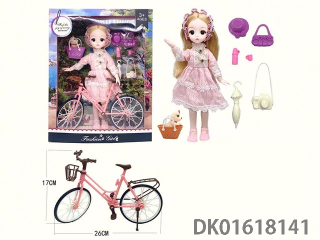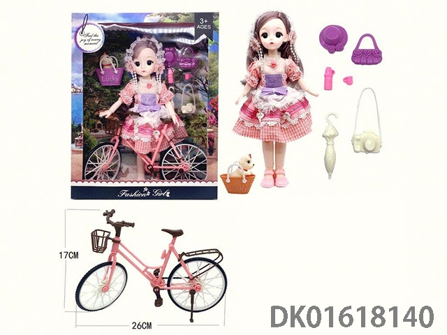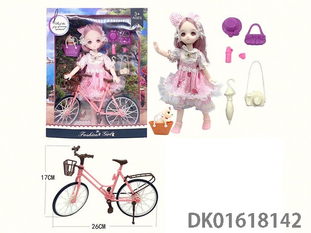 12 Inch 21 joint solid bjd doll, bicycle, basket, pet dog, camera, umbrella 5-piece set vacuum formed