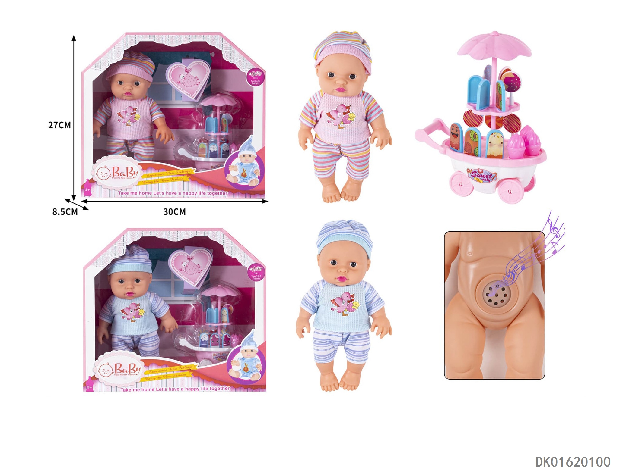 10 Inch vinyl body doll simulation doll with ic, ice cream truck