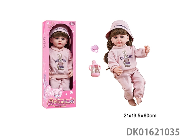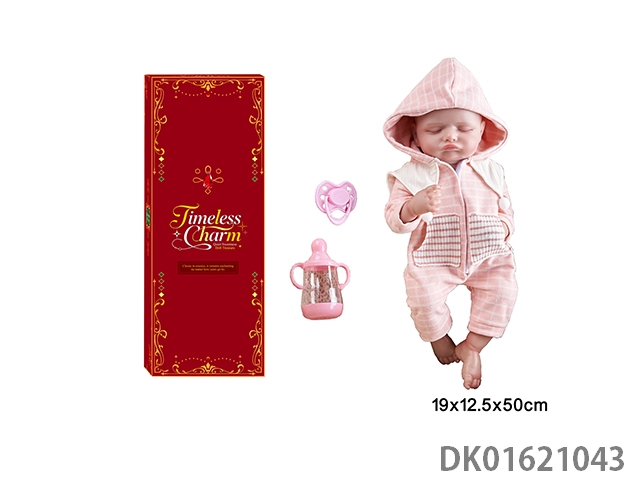 20 inch 5-joint vinyl body closed eye powder hoodie simulation doll reincarnation doll with nipple and bottle, single item