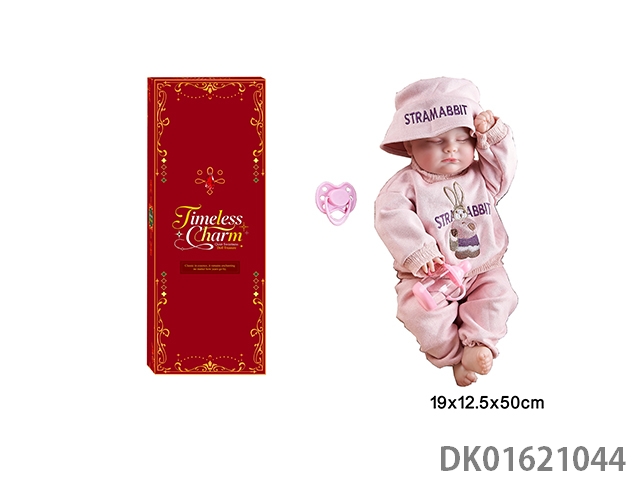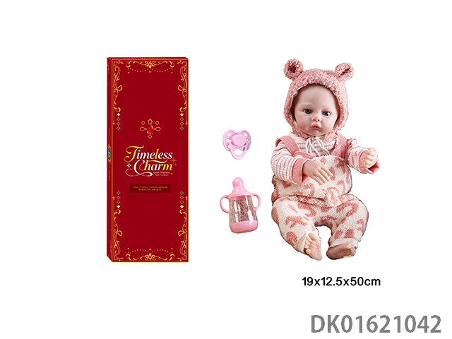 18 inch 5-joint vinyl body closed eye powder sleepwear simulation doll reincarnation doll with nipple and bottle, single item