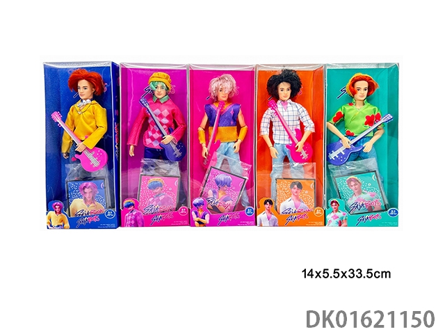 11.5 inch solid 11 joint demon hunting boy group animated version doll with guitar and mink card, 1 card, 5 mixed styles