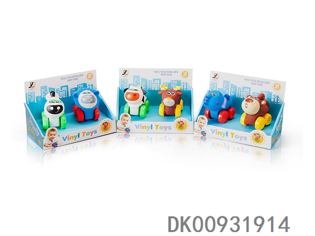 Yellow duckling, good fish, pink hippo, blue eight claw, pink pig, chicken