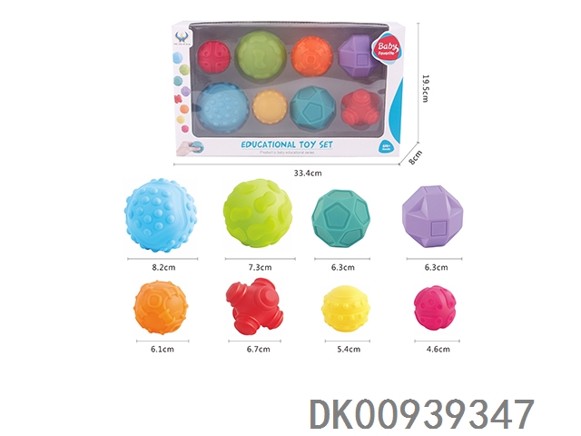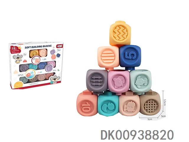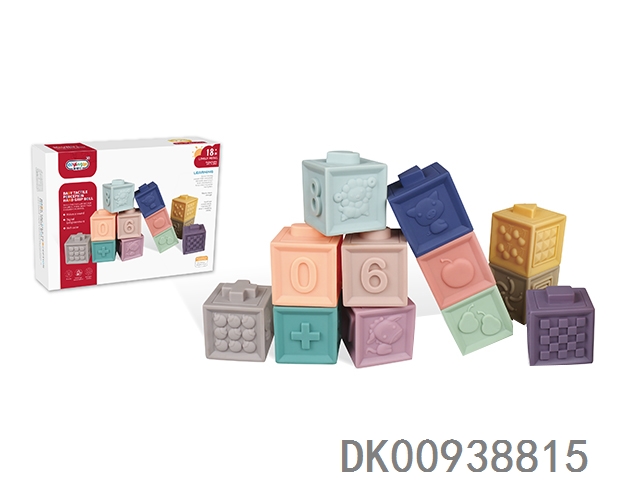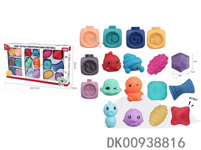 Yellow duckling, orange dolphin, yellow spot fish, frog, rooster, blue eight claw