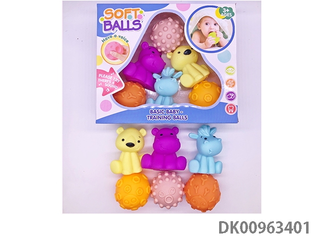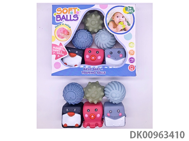 Puzzle hand grab ball and square simulated animal windowed box packaging (1 box of 6 mixed)