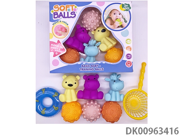 “Puzzle hand grab ball windowed box packaging (1 box of 6 mixed packages) with: net fishing, swimming circle﹨“
