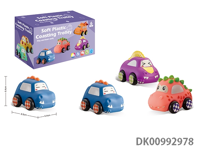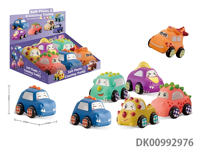 Soft rubber dinosaur car 6pcs / box