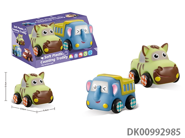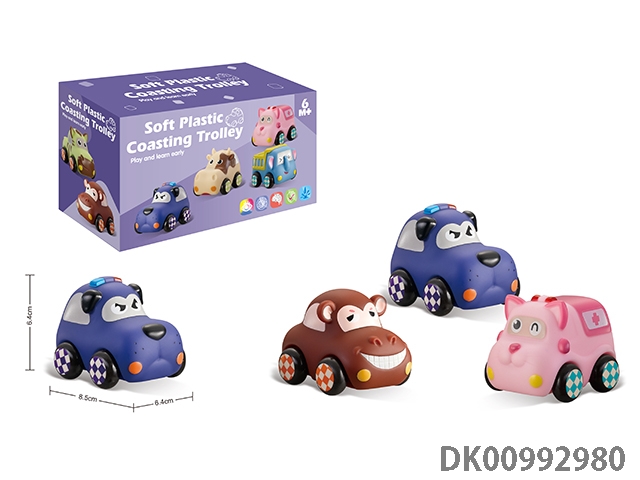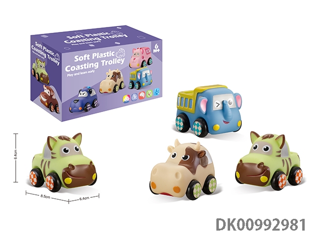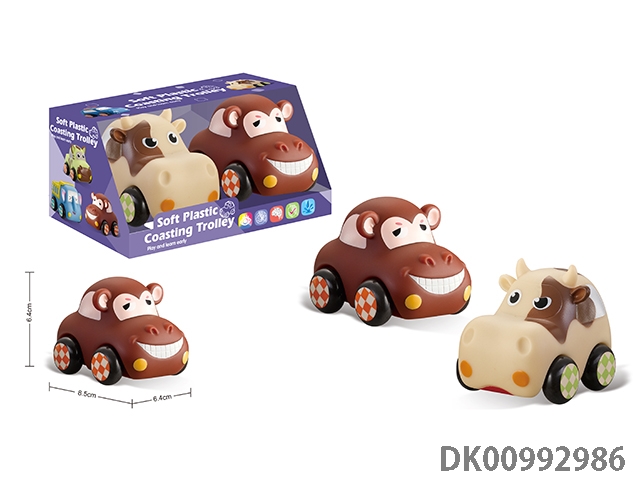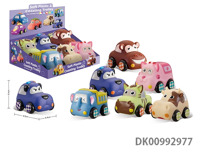 Soft rubber animal car 6pcs / box