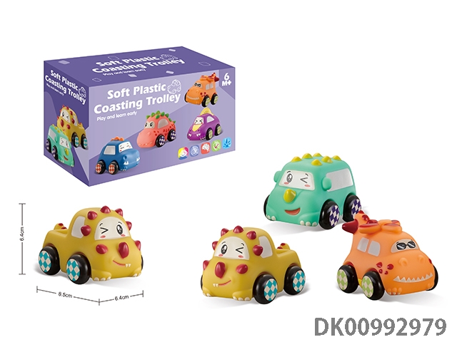 3 Soft rubber dinosaur cars