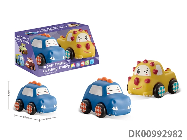 2 Soft rubber dinosaur cars