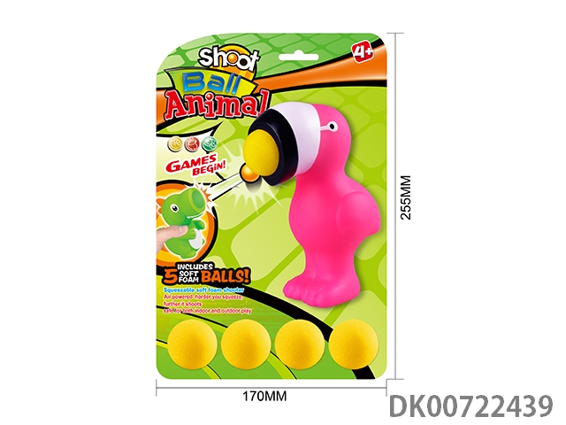 Rubber lined animal gunner (flamingo) plays eva ball (blister)