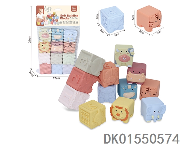 Soft rubber animal zodiac numbers and -1234 building blocks 12pcs