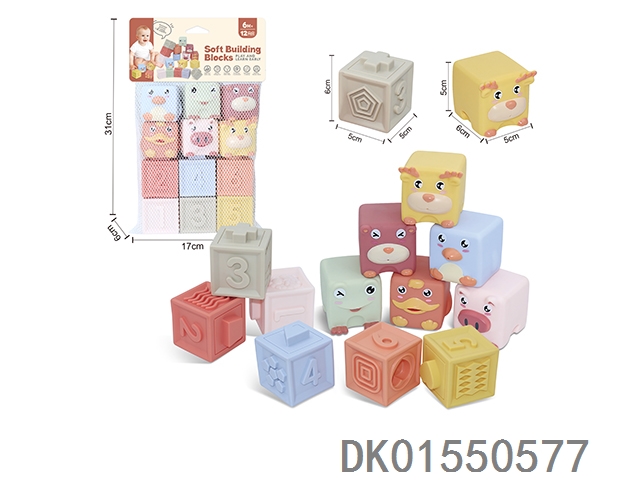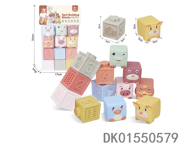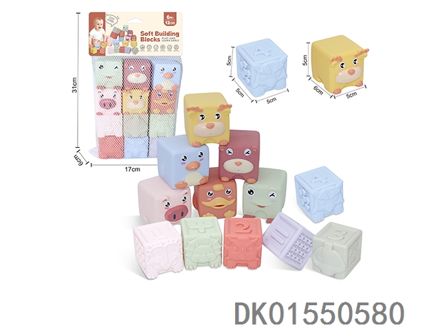 Soft rubber animal zodiac numbers 1-6 building blocks 12pcs
