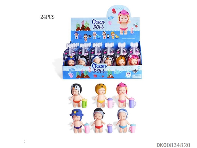 (Underwater world) 3-inch drinking water urine animal ocean baby plus water bottle 6 mixed pack 24pcs/box