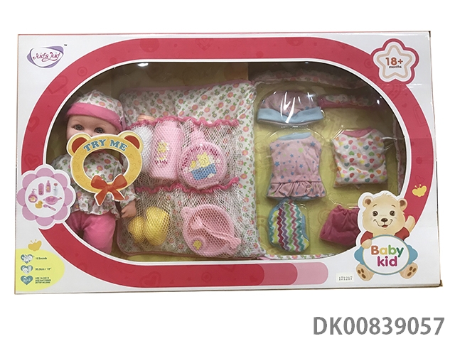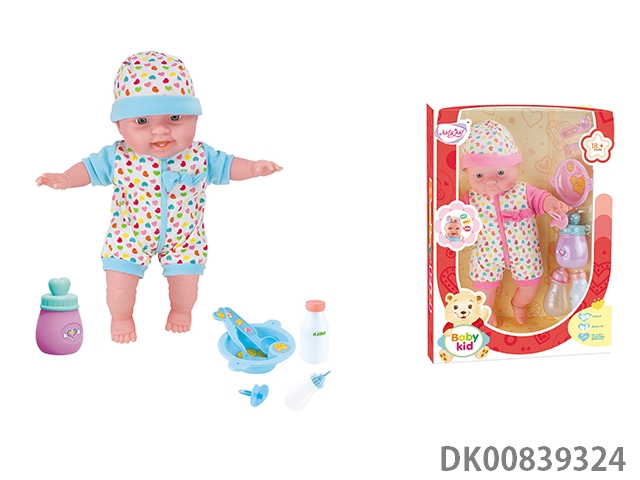12 Inch cotton body enamel hand and foot doll with ic, clothing, backpack, bath and tableware components