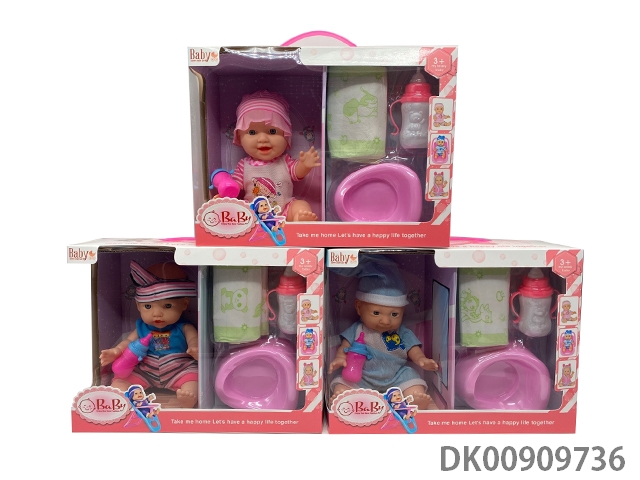 10 Inch enamel body music boy expression baby with milk bottle and paper diaper