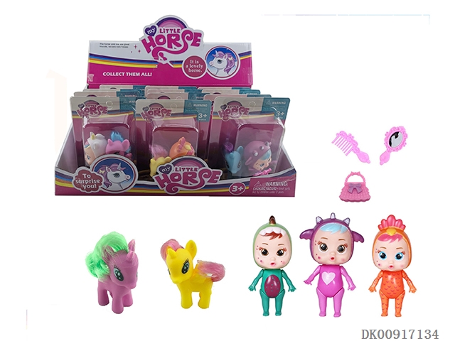 Enamel xiaowa with horse tricolor mixed bag with comb mirror bag 12pcs/box