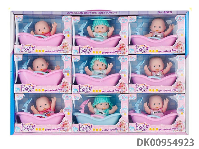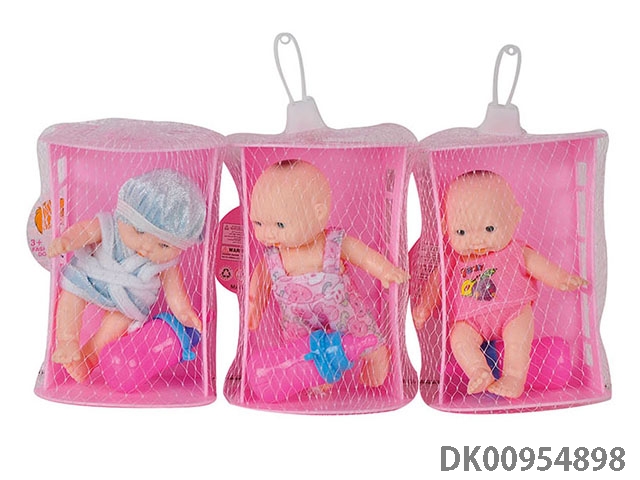 3 6-Inch enamel expression dolls with 6pcs bath