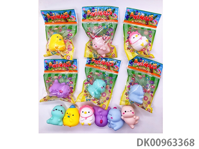 Simulated dinosaur opp color bag, bagged (6 mixed)