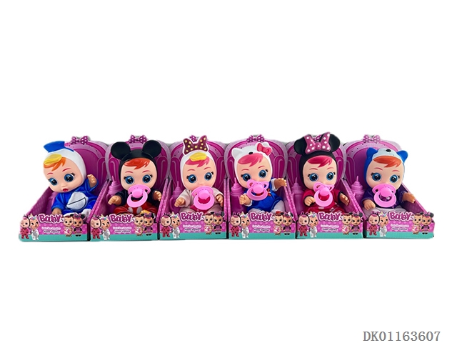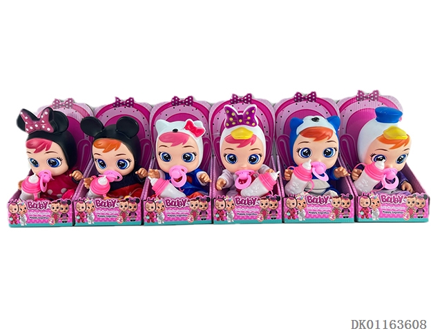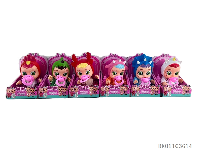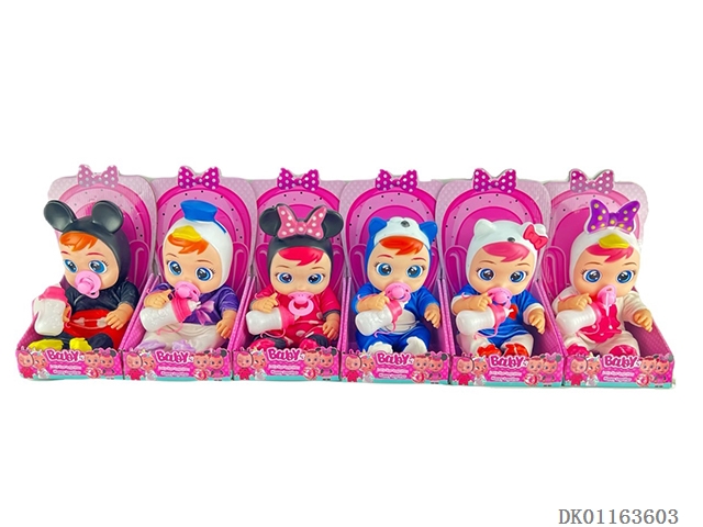 14 Inch full body enamel spray crying baby 6 mixed outfits (four tone music ic)