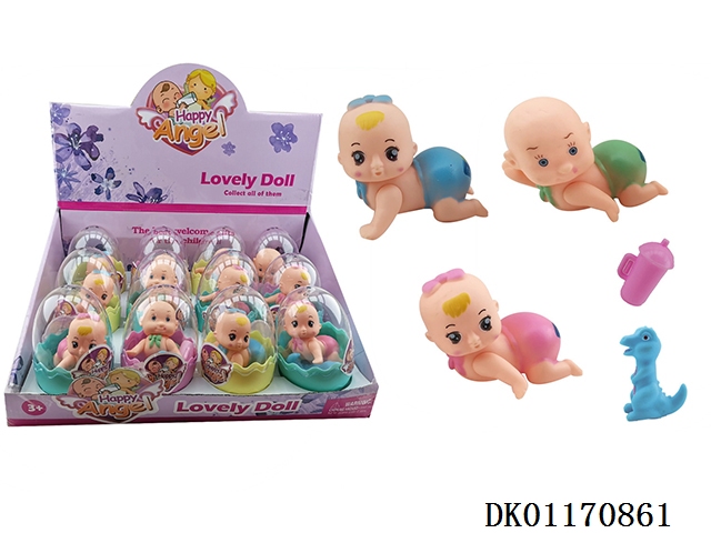 Egg filled enamel crawling baby with one enamel pet and three baby bottles 12pcs/box