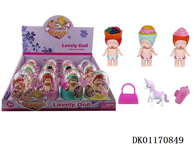 Egg lined fruit doll with handbag, pony, and bottle 12pcs/box