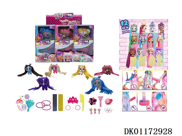 I love vip pets 21 cm straight hair straight hair 5 inch enamel vip pet club with comb and hairpin. dye paste, rubber band 5 strips, 6 types of mixed 9pcs/box