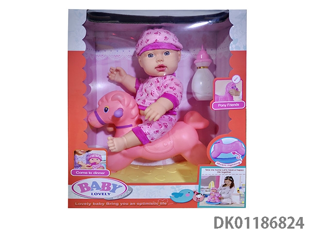 12 Inch enamel doll with lighting, music, rocking horse, milk bottle