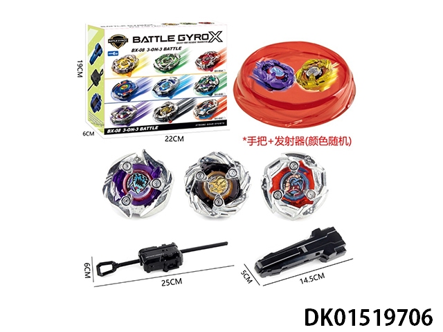Three gyroscopes, gyro disk, large ruler launcher, and handle (color random)