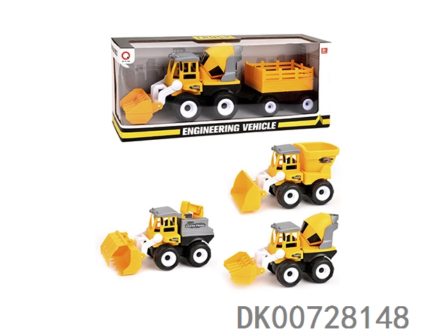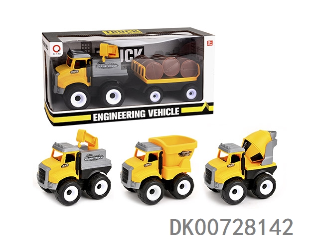 Inertial engineering vehicle (bucket, log, oil tank) towing oil drum