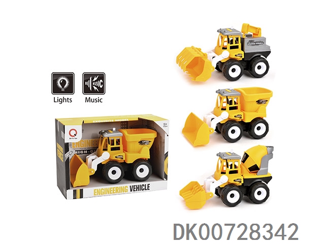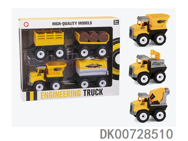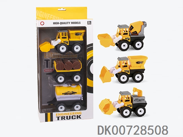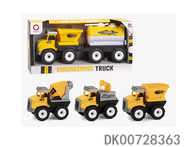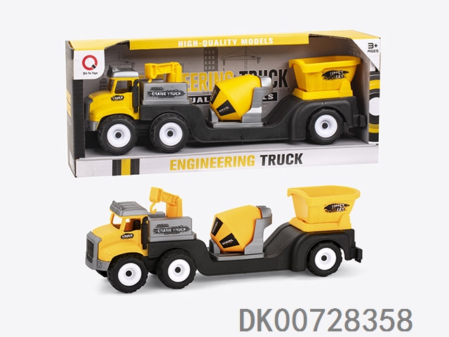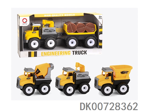 Inertia engineering vehicle (bucket, mixer, crane) towing oil drum