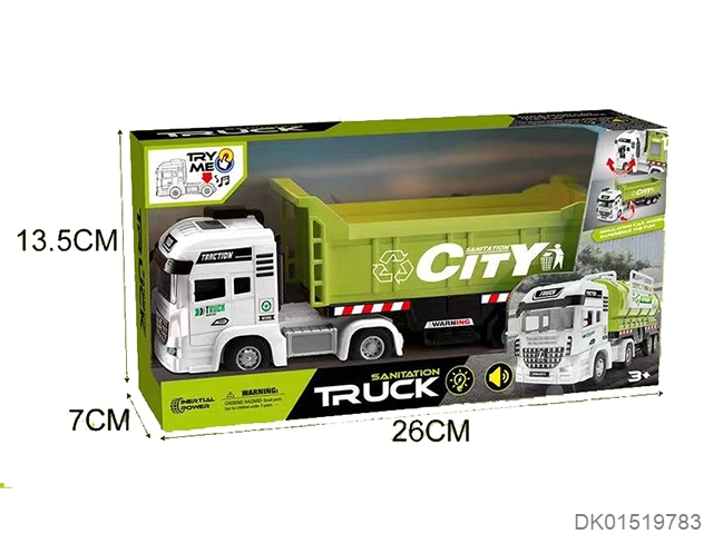 High quality simulation model inertia environmental sanitation vehicle series dump truck (with lighting, music, electric package ag13, 3 pieces)