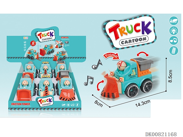 Cartoon inertial engineering vehicle with light and music (pack 3 ag13) 6pcs/box