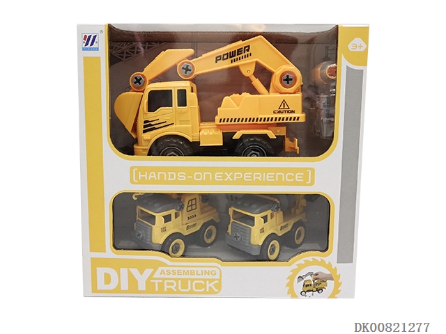 Diy excavator inertia disassembly engineering vehicle with 2 small disassembly engineering vehicles