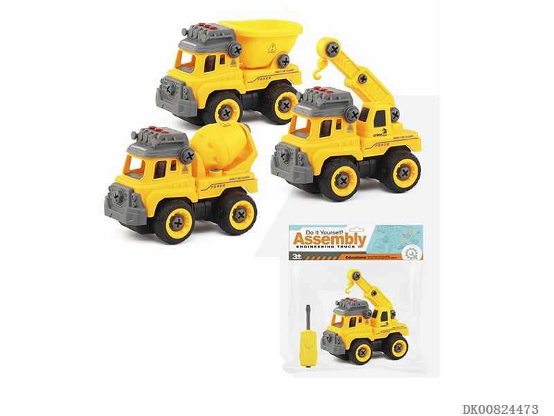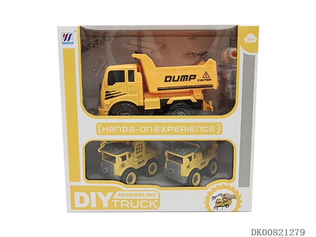 Diy dump truck inertial assembly and disassembly with two small assembly and disassembly engineering vehicles