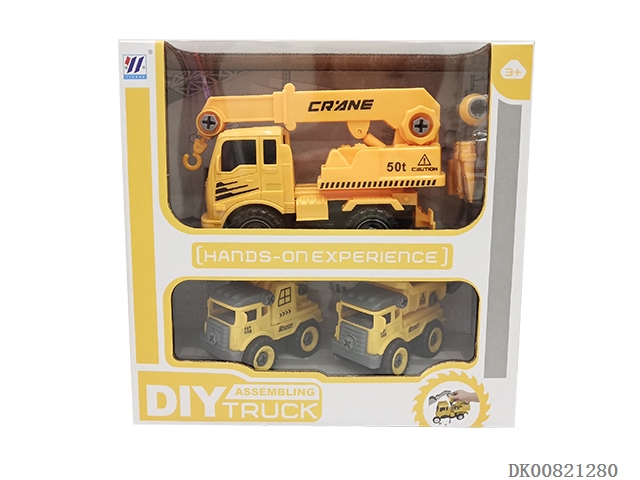 Diy crane inertial assembly and disassembly with 2 small assembly and disassembly engineering vehicles