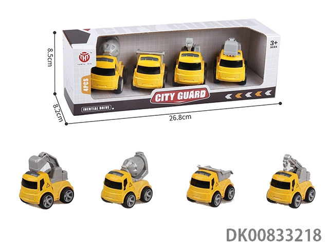 Inertial simulation engineering vehicle series crane dump truck digging truck mud tank truck mixer tractor color box 4 in 1 set