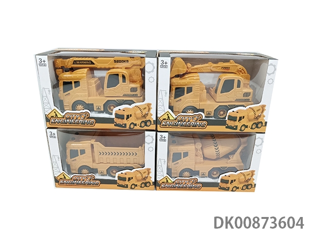 Two types of inertia alloy engineering vehicle are mixed with 8pcs/box