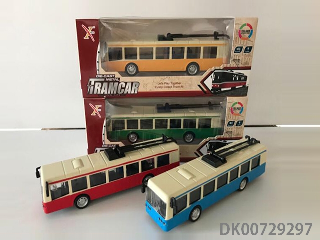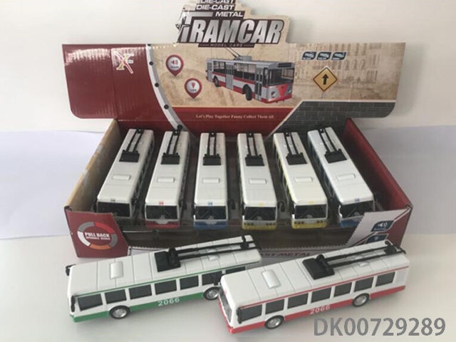 1: 90 Alloy bus trolley car, 3 door, light with sound and light (6 in a display box, 1 in 3 colors)