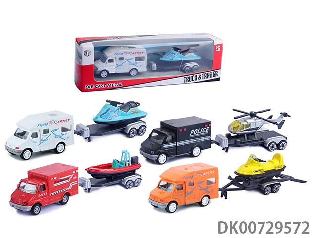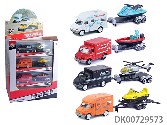 Alloy recoil station wagon with trailer and tow 16PCS/BOX