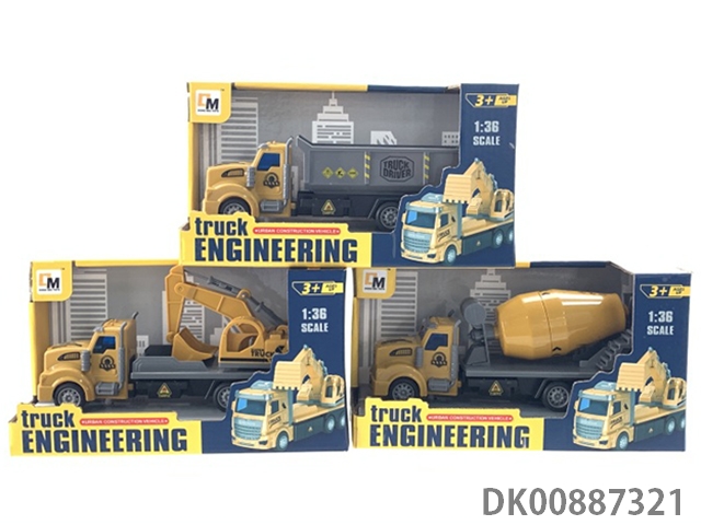 Plastic 1:36 long head return engineering vehicle (set 3)