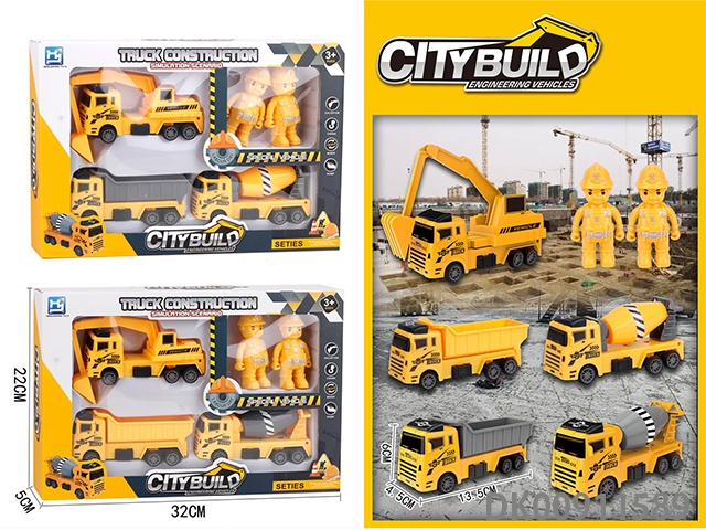 4 Return cartoon engineering vehicles, tower cranes, 2 roadblocks, 4 long logs and 2 stone piles