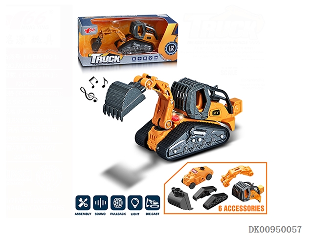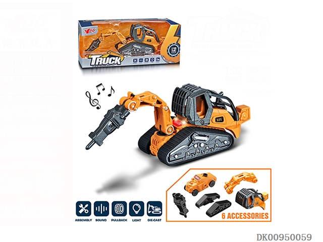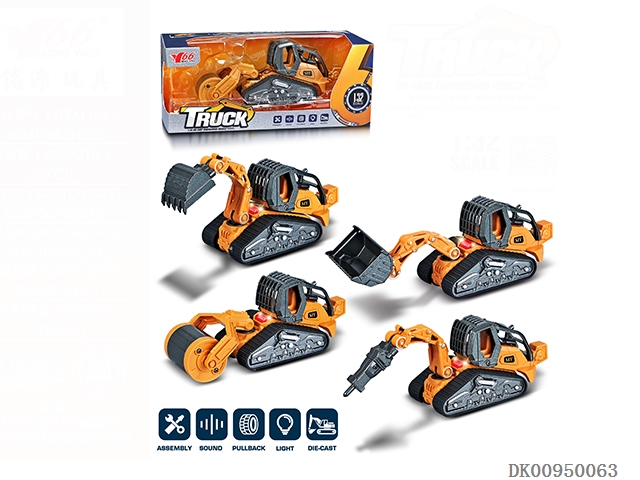 1: 32 Alloy recoil disassembly engineering vehicle with light and music (4 mixed)