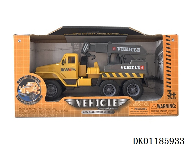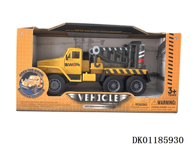 Engineering vehicle flat bottom rebound simulation rotating lifting crane small truck three door sound and light toy car