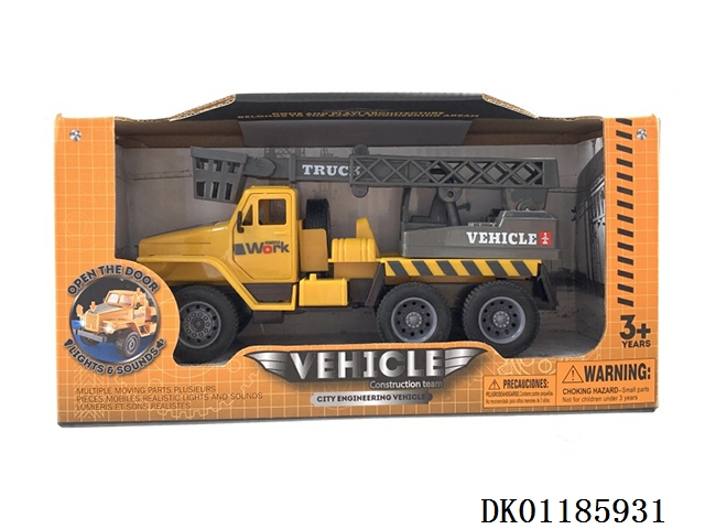 Engineering vehicle flat bottom rebound simulation rotating ladder small truck three door sound and light toy car